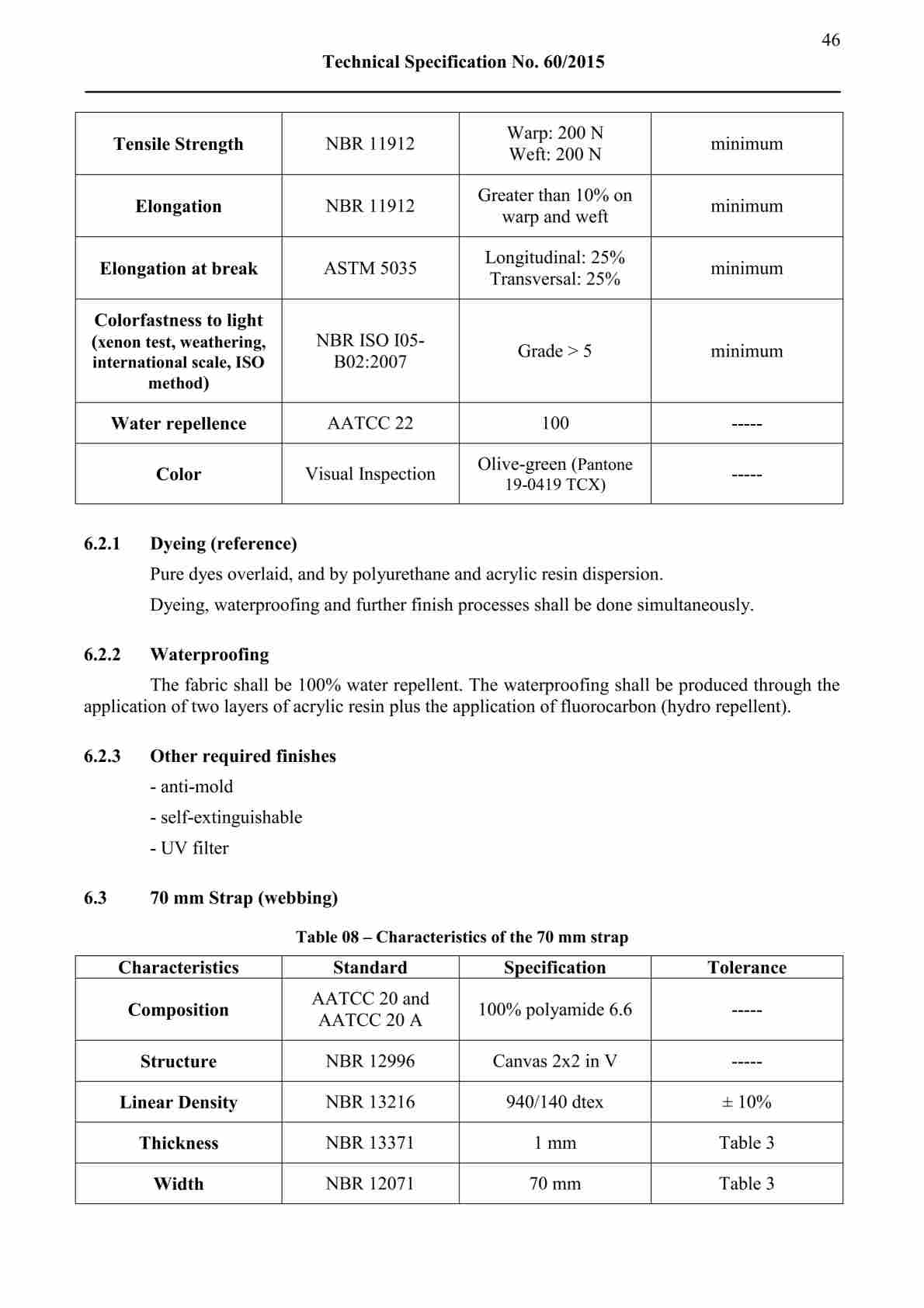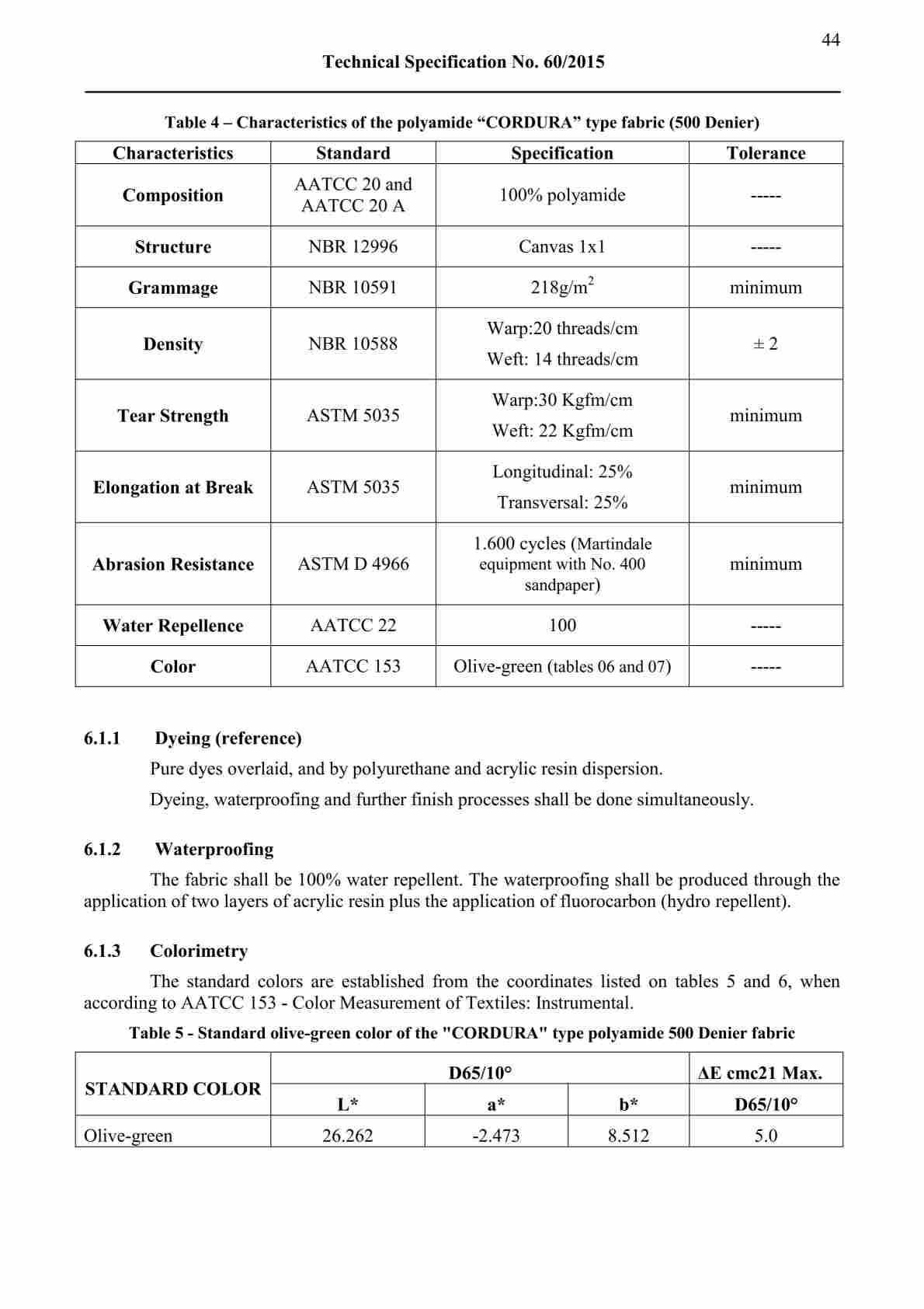 The main body is manufactured in olive-green 500D CORDURA-type polyamide fabric, selected for durability and controlled performance in demanding use conditions. According to the specification, the fabric must meet benchmarks for tear strength, abrasion resistance, water repellency, and color consistency to support dependable field application.